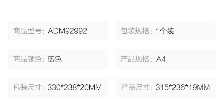 • 商品名稱:晨光(M&G)睿智系列A4藍(lán)色雙強(qiáng)力夾文件夾資料夾 單個裝ADM92992