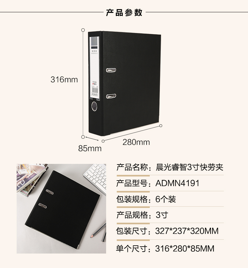 • 商品名稱:晨光(M&G)睿智系列黑色3寸快勞夾文件夾 6個(gè)裝ADMN4191