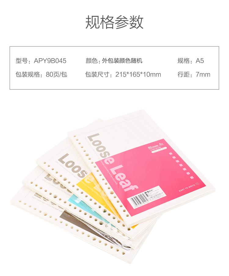 • 商品名稱:晨光(M&G)A5/80頁活頁本替芯線圈紙?zhí)鎿Q內(nèi)芯 20孔APY9B045