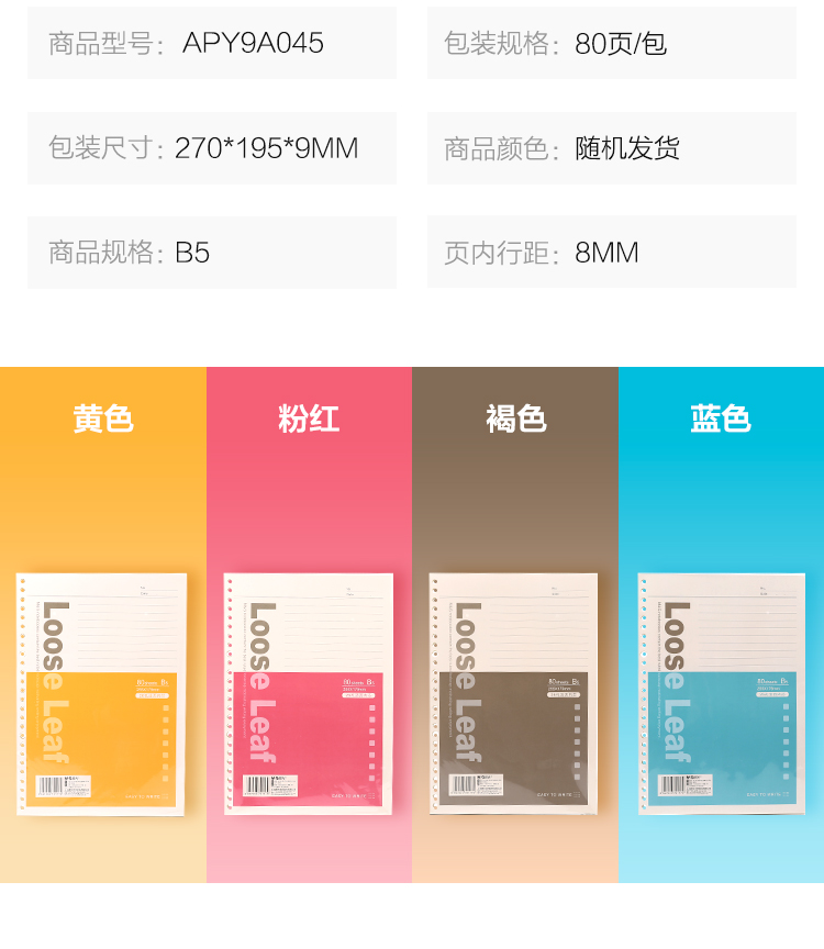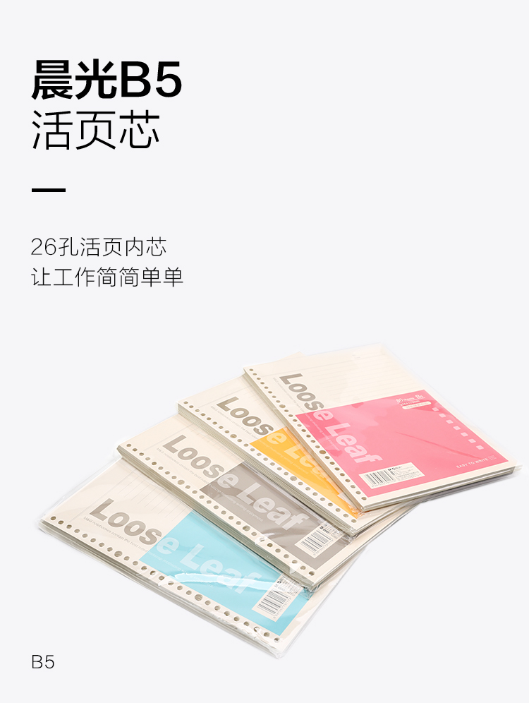 • 商品名稱:晨光(M&G)B5/80頁活頁本替芯線圈紙?zhí)鎿Q內(nèi)芯 26孔APY9A045