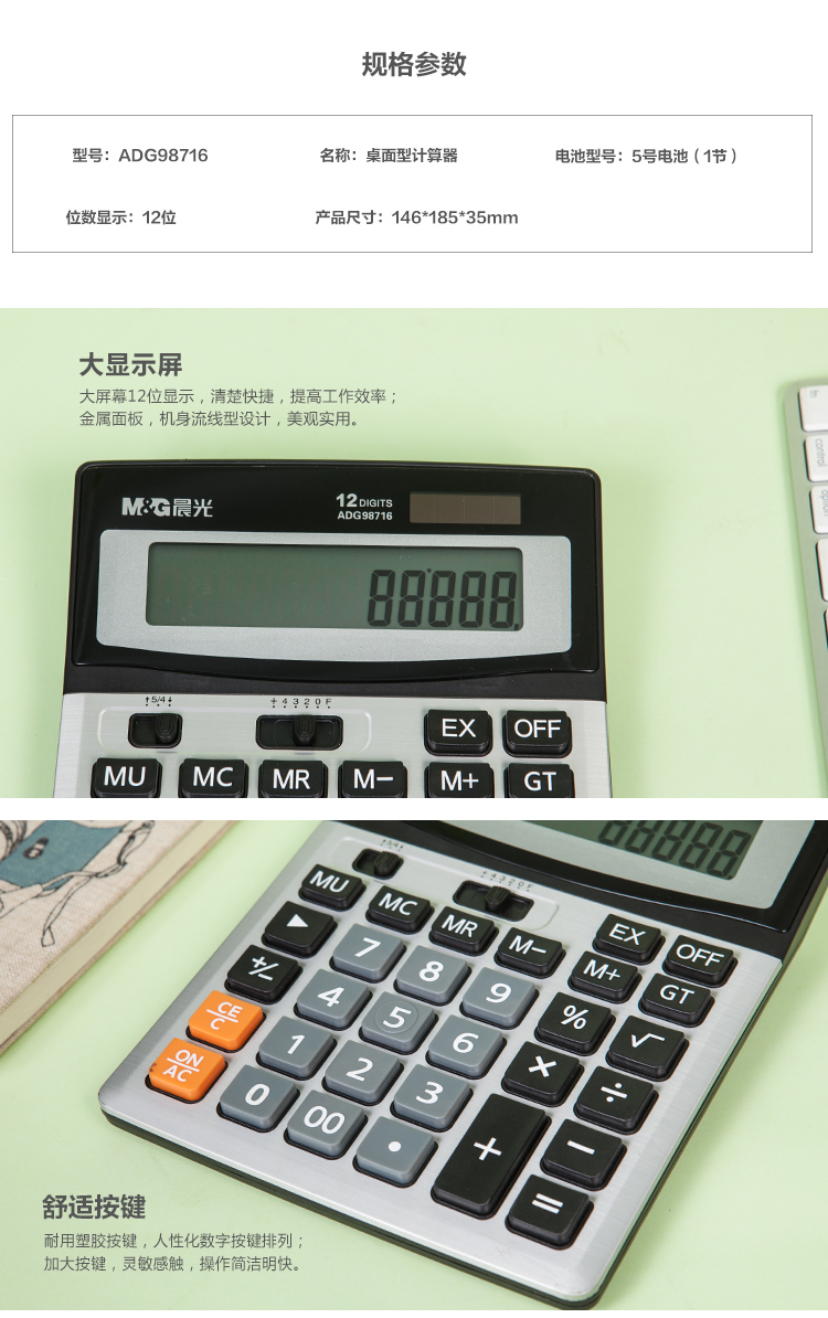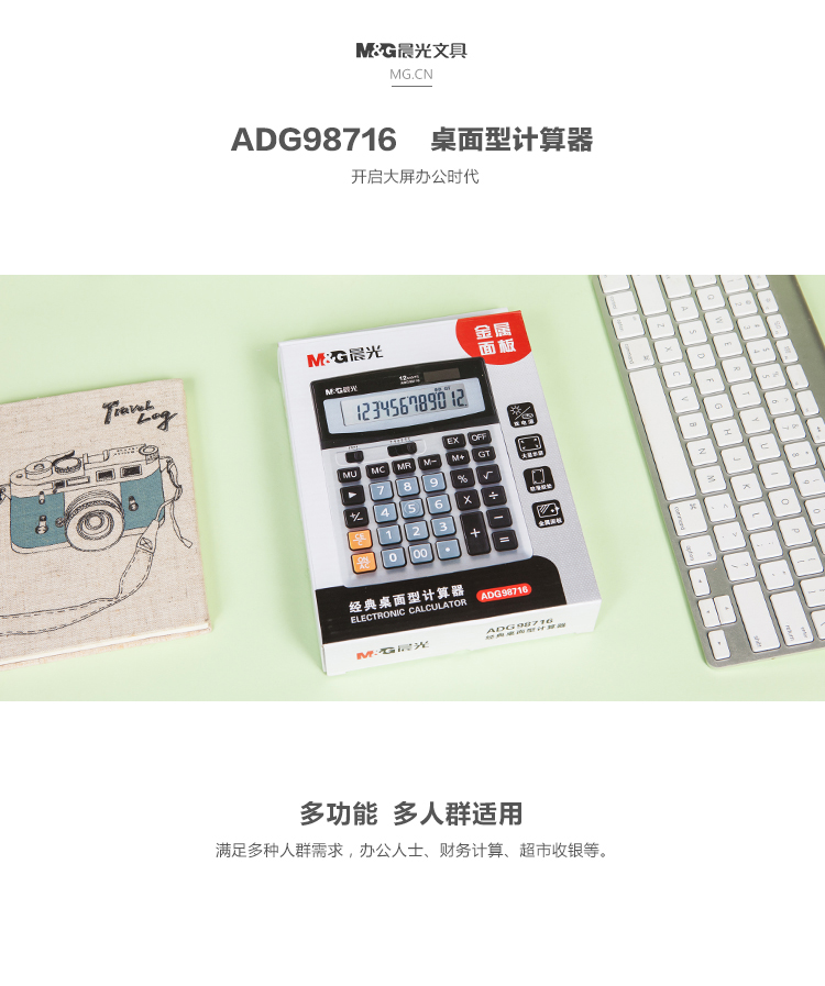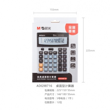 • 商品名稱:晨光(M&G)1654經(jīng)典雙電源通用桌面辦公計算器 12位大屏幕ADG98716