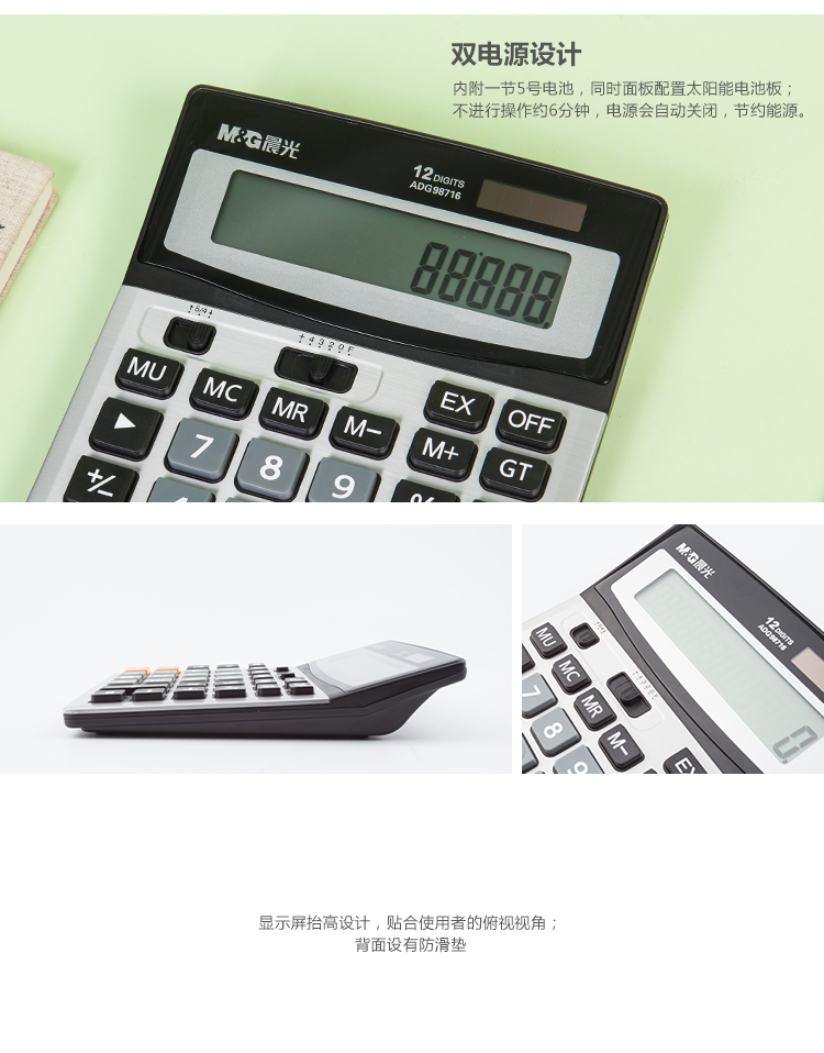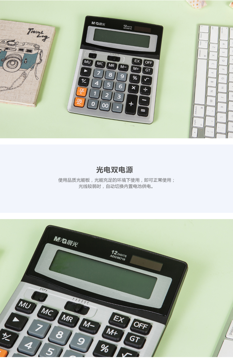 • 晨光(M&G)1654經(jīng)典雙電源通用桌面辦公計算器 12位大屏幕ADG98716