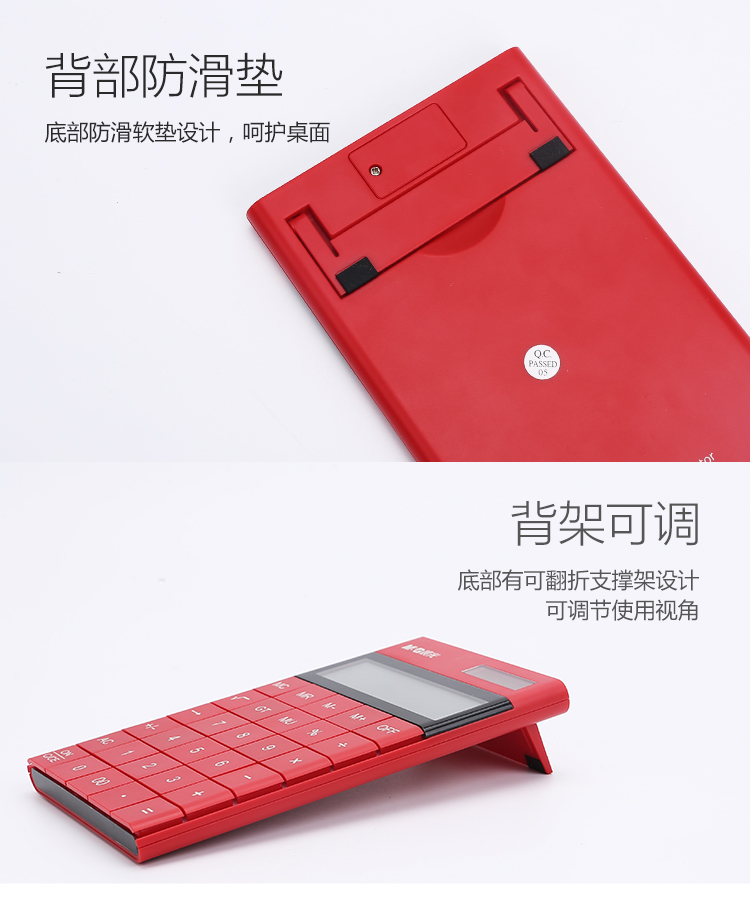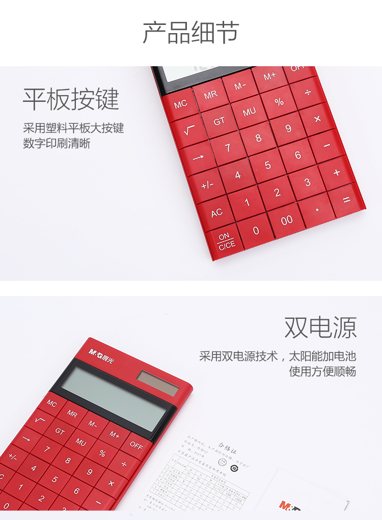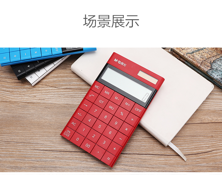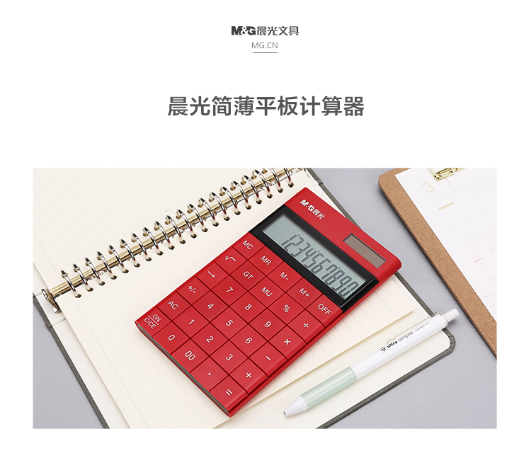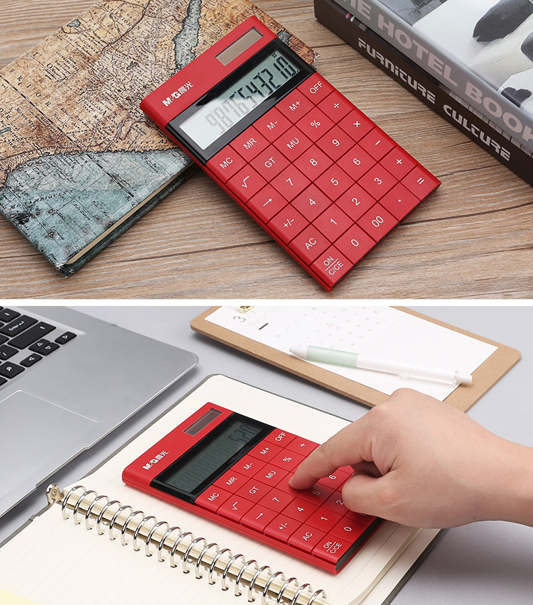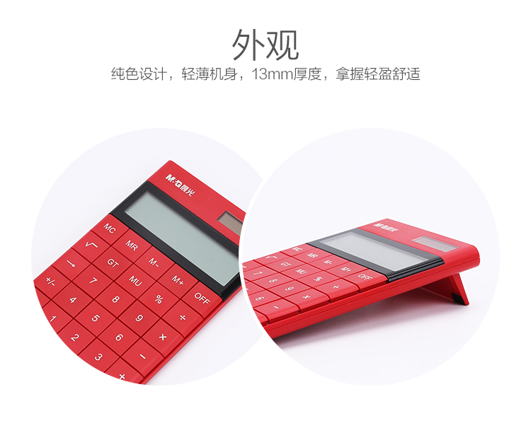 • 晨光(M&G)時尚紅色無縫按鍵平板式計算器 雙電源ADG98719