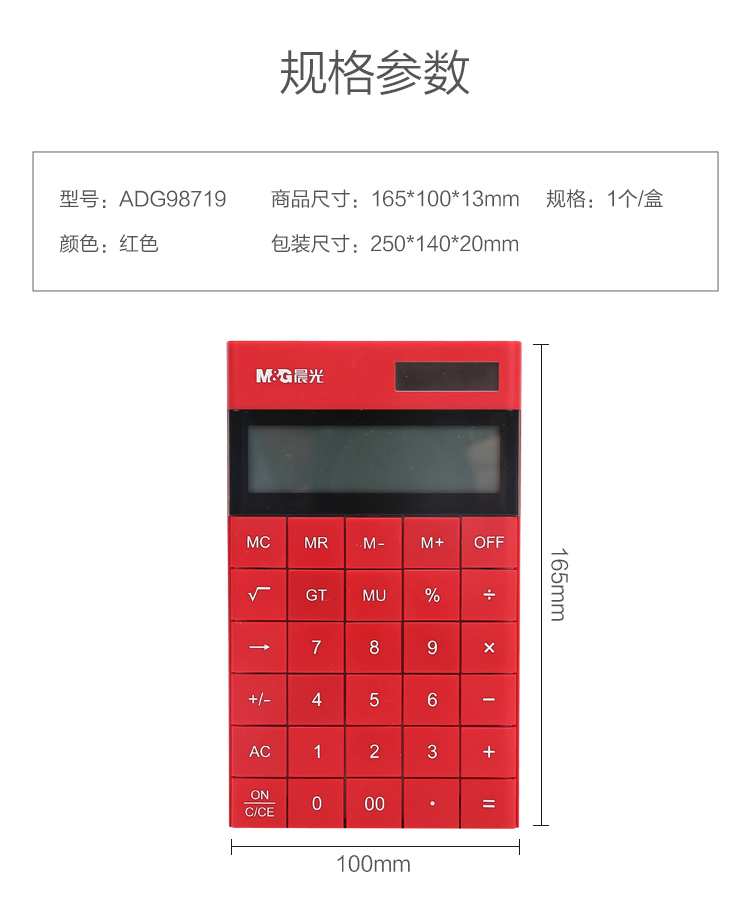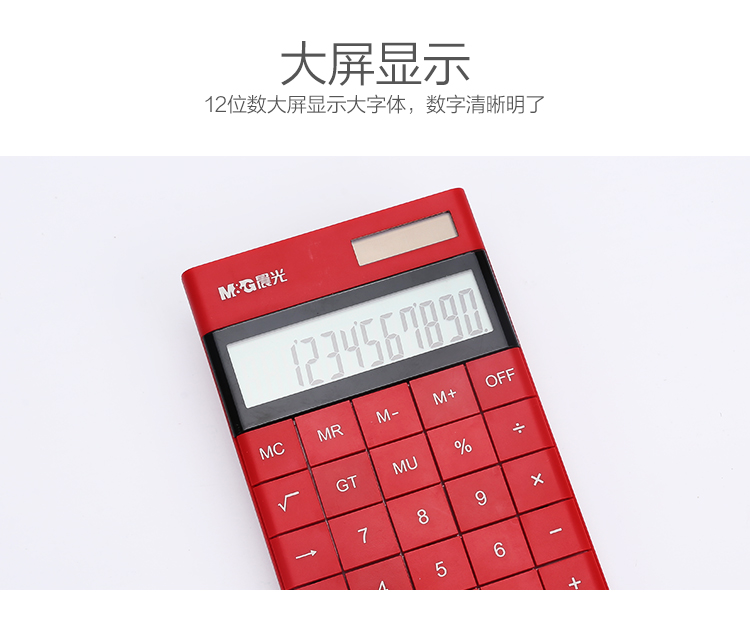 • 商品名稱:晨光(M&G)時尚紅色無縫按鍵平板式計算器 雙電源ADG98719