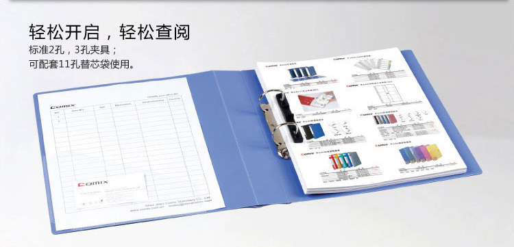 • 齊心(Comix) TC532A-D A4文件夾/資料夾 2孔D型夾 藍(lán) 單個(gè)裝