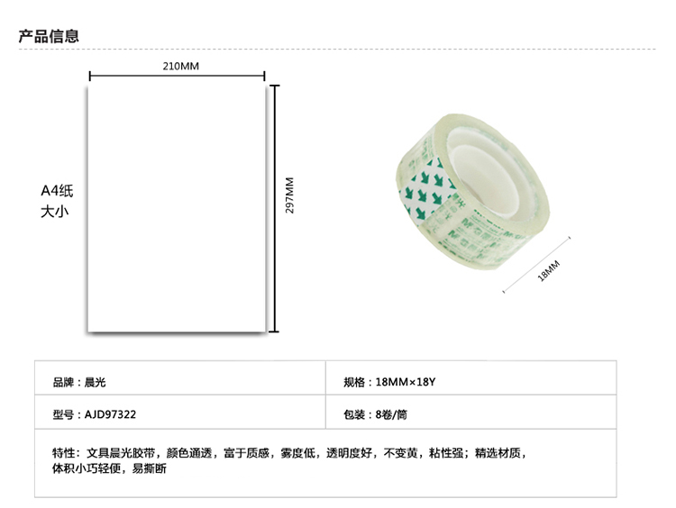 • 商品名稱:晨光(M&G)18mm*18y高透易撕便攜小膠帶 8卷裝AJD97322